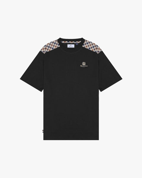 A signature T-shirt blending minimal design with heritage details. Made from 100% cotton single jersey, it features contrast Club Check poplin inserts on the shoulders, adding depth and identity to a solid-colour body. The chest is personalized with the Aquascutum Active logo and heritage Crest, a mark of timeless style.