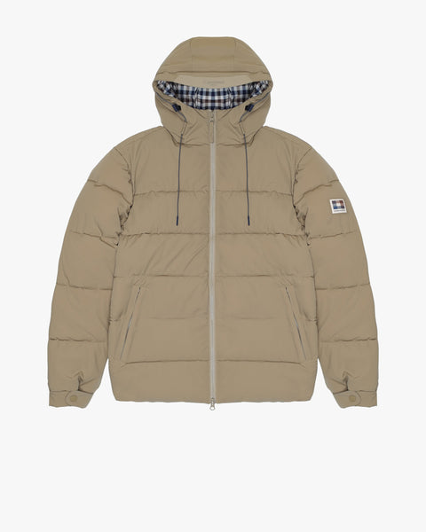 A new evolution of our signature technical down-alternative puffer. Crafted in Sp Shell — our 4-way stretch nylon fabric — and insulated in Primaloft® Black for lightweight warmth and breathability, this piece is engineered for active comfort and weather resistance. Updated for the season with a new hood adjustment system and a 3D silicone Aquascutum Active logo detail at the front. The left sleeve is finished with our signature silicone badge in Club Check colours. Lined in tone-on-tone fabric with linear quilting and Club Check detailing, it blends performance with iconic identity.