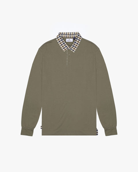 A long-sleeved version of our Iconic Contrast Collar Polo. Crafted in 100% combed cotton single jersey, this solid-colour style is elevated by a poplin Club Check collar in pure cotton. Designed with ribbed cuffs for a refined finish, it combines essential elegance with the unmistakable heritage of Aquascutum Active.