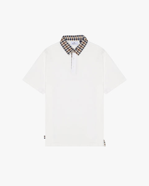 A modern essential defined by refined heritage detailing. Crafted in 100% combed cotton single jersey for a clean, lightweight feel, this solid-colour polo is elevated by a contrast collar in Club Check poplin. Subtle and iconic, it embodies the Aquascutum Active spirit with a balance of everyday versatility and timeless identity.
