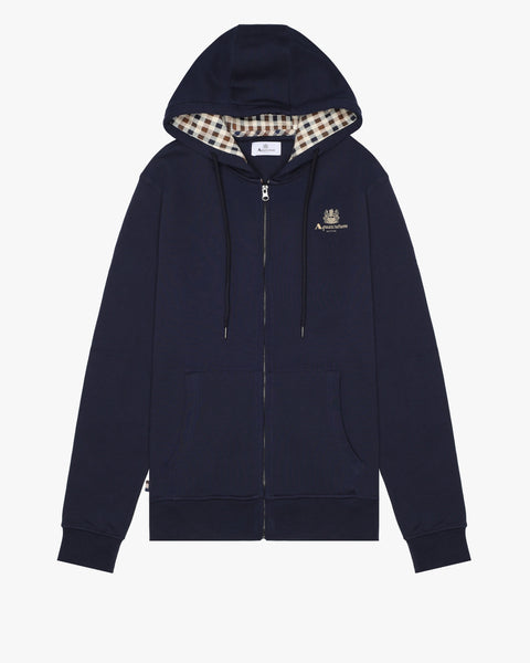 A signature piece of the Aquascutum Active wardrobe, this full-zip hoodie is crafted in compact, unbrushed 100% cotton for structured comfort. The hood is lined in cotton poplin featuring our iconic Club Check, while the left chest bears the Aquascutum Active logo paired with the historic Crest. Designed for both utility and identity, it features a double-slider YKK zip and tone-on-tone rib trims. 100% Cotton