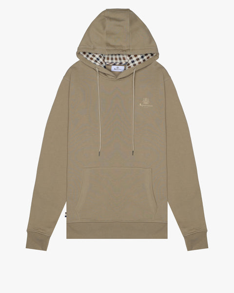 A clean, essential layer that expresses the Aquascutum Active identity. Made from compact, unbrushed 100% cotton, this pullover hoodie features a cotton poplin lining in our iconic Club Check. The front is finished with a small-scale Aquascutum Active logo and historic Crest print on the chest. Ribbed trims and a structured cut ensure both comfort and sharpness.