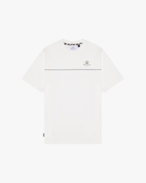 A contemporary reinterpretation of our essentials: the Piping Logo T-Shirt. Crafted in 100% cotton single jersey, it features the Aquascutum Active logo with the heritage Crest on the left chest. A contrasting piping detail runs across the chest, adding a sharp and modern graphic accent. Designed for comfort and versatility, it embodies the refined balance between casualwear and our distinctive heritage identity.
