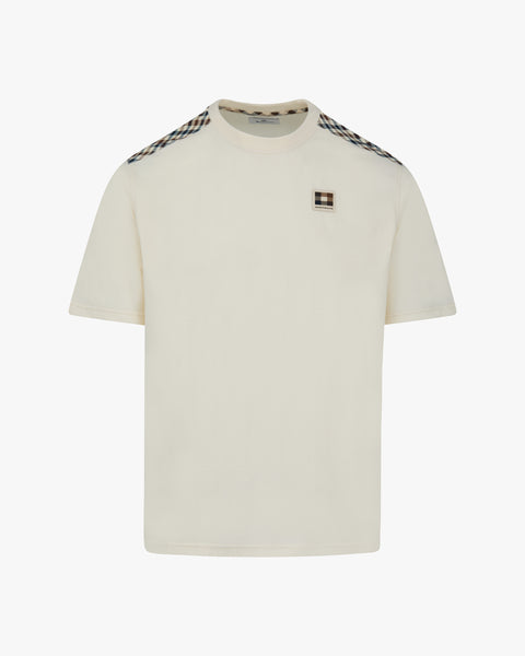 The Lamina Pocket T-Shirt is a contemporary reinterpretation of a classic short-sleeve tee, combining clean A clean and versatile T-shirt that merges Aquascutum Active heritage with subtle technical detailing. Crafted from premium cotton jersey, this short-sleeve T-shirt features lamina fabric inserts on the shoulders, introducing a refined contrast inspired by performance wear. The design is completed with a tonal Aquascutum Active badge on the chest and a classic crew neck, making it an elevated everyday essential with a contemporary attitude.